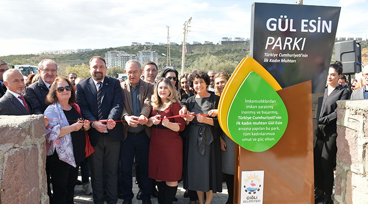 Ayd?n’in Çine ilçesi Karpuzlu mahallesinde 1933 y?l?nda yap?lan muhtarl?k seçimlerini kazanan Türkiye’nin ilk kad?n muhtar? Gül Esin’in ad?n? ta??yan park Harmandal? Gazi Mustafa Kemal Atatürk Mahallesi 9 Eylül Caddesi’nde aç?ld?. Park?n aç?l???na CHP ?zmir Milletvekili Atilla Sertel, ?zmir Büyük?ehir belediye Ba?kan? Tunç Soyer’in e?i ve ?zmir Köy Koop Birlik Ba?kan? Neptün Soyer, CHP Çi?li ?lçe Ba?kan? Mert Özcan, ?Y? Parti Çi?li ?lçe Ba?kan? Özgür Do?an, Ba?kan Gümrükçü’nün annesi Nilgün Gümrükçü, Gazi Mustafa Kemal Atatürk Mahallesi Muhtar? Sevcan Yalman, CHP Kad?n ve Gençlik Kollar? Yönetimi, muhtarlar, meclis üyeleri, partililer ve çok say?da vatanda? kat?ld?. Aç?l??a kat?lanlara defte a?ac? fidan? hediye edildi.