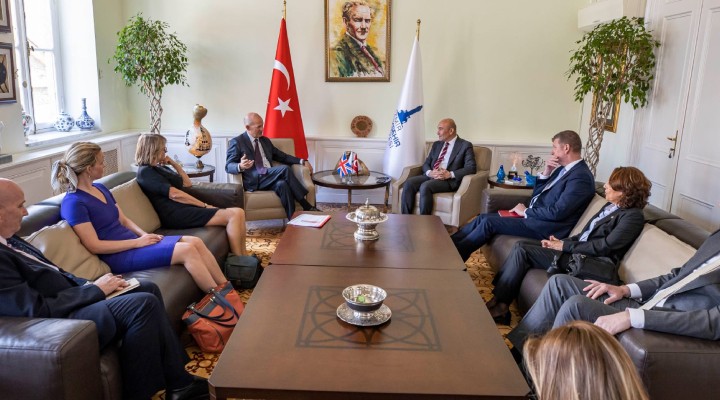 ?zmir Büyük?ehir Belediye Ba?kan? Tunç Soyer, ?ngiltere Büyükelçisi Dominick Chilcott’u makam?nda a??rlad?. Ziyarette ?zmir ile ?ngiltere aras?ndaki ili?kilerin sadece turizm odakl? olmamas? gerekti?ini söyleyen Ba?kan Tunç Soyer, “?zmir, birlikte ya?aman?n önemini kavram?? bir ?ehir. Oldukça demokratik, dayan??ma ruhu olan bir ?ehir. Bütün olarak hareket edebilen bir ?ehir. ?ngiltere ile karde? kentimiz olmas?n? isteriz” dedi.