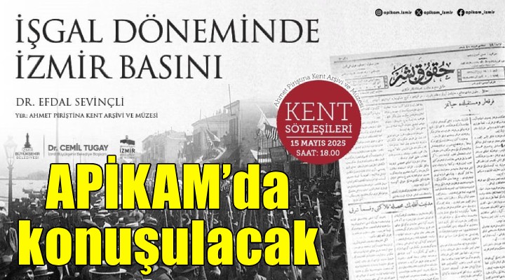 ?zmir Büyük?ehir Belediyesi Ahmet Piri?tina Kent Ar?ivi ve Müzesi’nde (AP?KAM) devam eden “Kent Söyle?ileri” kapsam?nda 15 May?s 1919’da ba?layan ve 9 Eylül 1922’de son bulan i?gal y?llar? boyunca ?zmir’de bas?n hayat?n?n durumu mercek alt?na al?nacak. Dr. Efdal Sevinçli’nin konu?mac? olarak kat?laca?? “??gal Döneminde ?zmir Bas?n?” söyle?isi, 15 May?s Per?embe günü ziyaretçilerini bekliyor.