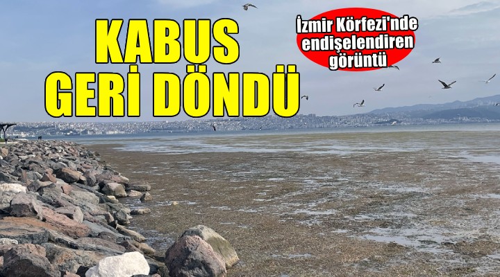 ?zmir Körfezi'nde belli dönemlerde gözlemlenen yosun, Bostanl? sahilinin belli kesimlerinde deniz yüzeyinde ye?il örtü olu?turdu. Su üstündeki yosunlar?n çürümesi kirlilik ve kokuya neden olabiliyor.