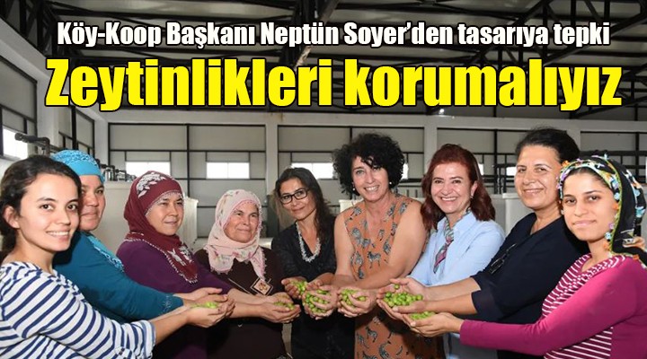 ?zmir Köy Koop Birlik Ba?kan? Neptün Soyer, zeytinlik alanda madencilik yap?labilmesinin önünü açan kanun teklifinin TBMM'ye sunulmas?yla ilgili konu?tu. Binlerce y?ll?k köy ya?am?n?n sadece 300 y?ll?k bir geçmi?i olan endüstriyel tar?m anlay??? ile de?i?tirilmek istendi?ini belirten Neptün Soyer, “Sa?l?kl? g?da, g?da güvenli?i ve g?da egemenli?imiz için, gelece?imiz için zeytin a?açlar?m?za, biyoçe?itlili?imize, geleneksel yerel tohumlara, risk alt?ndaki türlere sahip ç?kmal?y?z. Teknolojiden de faydalanarak, biyoçe?itlili?i, kültürel miras?, geleneksel üretimi ve yerinde üretimi, aile çiftçili?ini korumak ve ya?atmal?y?z. Kar?? kar??ya kald???m?z Covid-19, afetler, iklim ve su krizi gibi tüm zorluklarla mücadele edebilmek için zeytinliklerimizi korumal?y?z” dedi.