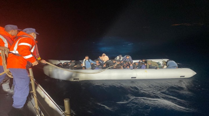 Sahil Güvenlik ekiplerince durdurulan hareketli lastik bottaki 41 düzensiz göçmen yakaland?.