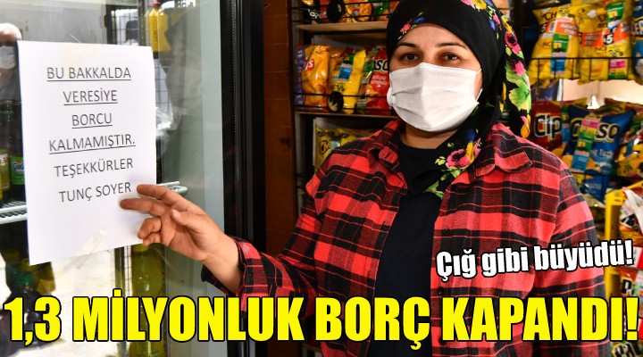 ?zmir Büyük?ehir Belediye Ba?kan? Tunç Soyer'in de kampanyay? ba?latt?ktan sonra Konak Gürçe?me Mahallesi'nde bulunan bir bakkal?n 10 bin liray? bulan borcunu bireysel olarak ödedi?i ö?renildi. Esnaf Nurgül Bilgec, “10 y?l? a?k?n bir süredir borcunu ödeyemeyen mü?terimiz var. Biz art?k bir çok ki?inin borcunu ödeyemeyece?ini dü?ünüyorduk. O paray? gözden ç?karm??t?k. Büyük?ehir Belediye Ba?kan?m?z Tunç Soyer'e çok te?ekkür ediyorum. Tunç Ba?kan geldi. Kendisini görünce ?a??rd?k. Defterimizi ald?. Paras?n? ödedi. Çok sevindik, mü?terilerimiz de çok sevindi. Çok zor bir dönemden geçiyoruz. Hem mü?teriler ad?na hem de kendi ad?m?za çok te?ekkür ediyoruz. Tam bayram öncesi çok iyi geldi. Buras? fakir bir mahalle. ?nsanlar ürün al?yor, veresiye yazd?r?yor. Vermesek olmaz. Mahalle bakkal?y?z. Yap?lan ödeme sonras? aç???m?z? kapatt?k. Dükkan?m?za mal alabilece?iz art?k” dedi.