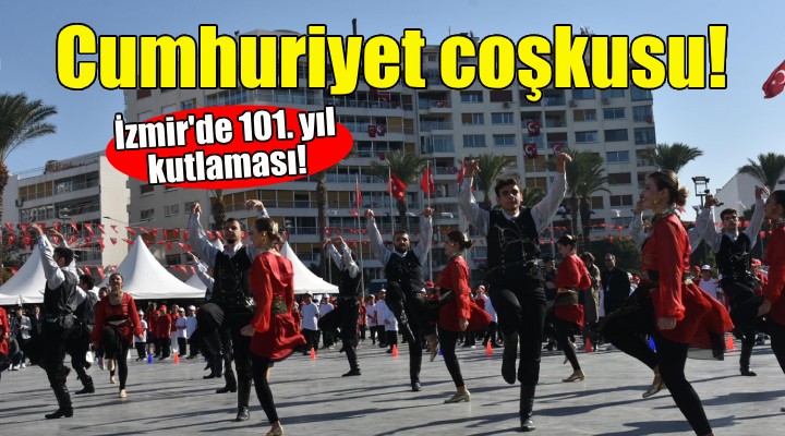 Cumhuriyetin 101'inci y?l? kutlamalar? kapsam?nda ilk olarak ?zmir Valili?i'nde tebrikat töreni düzenlendi. ?zmir Valisi Süleyman Elban, tebrikleri kabul ettikten sonra Cumhuriyet Meydan?'nda resmi kutlama töreni yap?ld?. Vali Elban, Ege Ordusu ve Garnizon Komutan? Orgeneral ?rfan Özsert ve ?zmir Büyük?ehir Belediye Ba?kan? Cemil Tugay, tören arac?yla vatanda?lar? selamlay?p, bayram?n? kutlad?. Sayg? duru?unda bulunulmas? ve ?stiklal Mar??'n?n ard?ndan Cumhurba?kan? Recep Tayyip Erdo?an'?n 29 Ekim Cumhuriyet Bayram? mesaj? okundu.