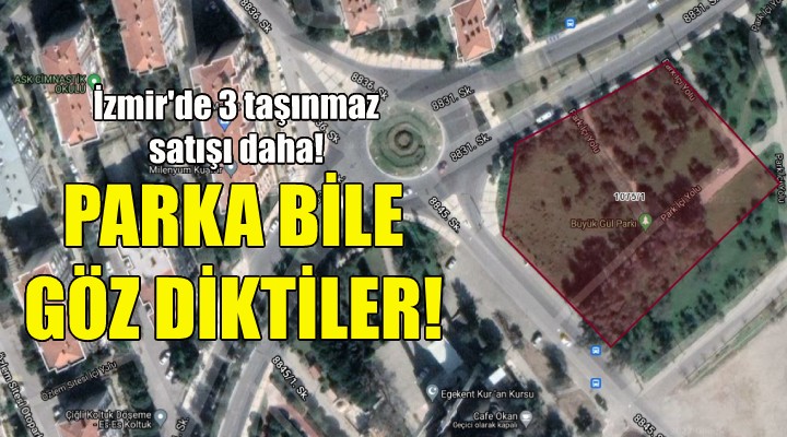 Yay?mlanan ilanla ?zmir'deki 3 ta??nmaz da sat??a ç?kar?ld?. Söz konusu ta??nmazlar?n en dikkat çekeni ise Çi?li, Küçük Çi?li Mahallesi'nde yer al?yor. 1075 ada 1 parseldeki 5 bin 81 metrekarelik arazi Büyük Gül Park? olarak hizmet veriyor. Vatanda?lar?n ?ehir hayat?ndan uzakla?mas?, çocuklar?n ye?il alanda vakit geçirebilmesini sa?layan bölge için belirlenen geçici teminat miktar? ise 1 milyon TL.