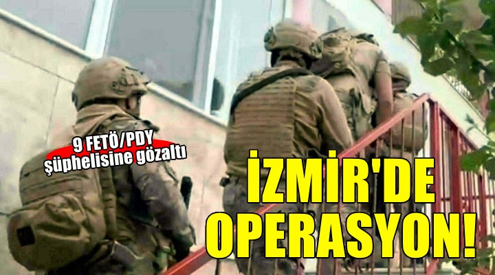 ?zmir Cumhuriyet Ba?savc?l??? Terör Suçlar? Soru?turma Bürosu taraf?ndan FETÖ/PDY’ye yönelik soru?turma yürütüldü. Soru?turmalarda isimleri geçen, haklar?nda örgüt üyesi olduklar? yönünde beyanlar ile ard???k arama ve veri analiz raporlar?nda tespitler bulunan ve polis memuru olarak aktif görevde olan 10 ?üpheli tespit edildi. Polis taraf?ndan ?üphelilere yönelik, ?zmir merkez, Bergama, Kemalpa?a, Seferihisar, Ödemi? ilçelerinde bu sabah e? zamanl? operasyon düzenlendi. ?üphelilerden 9'u yakalanarak gözalt?na al?nd?. Di?er ?üphelinin yakalanmas?na yönelik çal??malar sürüyor.