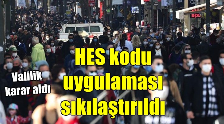 ?zmir Valili?i taraf?ndan yap?lan aç?klamaya göre, koronavirüs tedbirleri kapsam?nda ?l H?fz?ss?hha Kurulu taraf?ndan yeni kararlar?n al?nd??? bildirdi. Aç?klamada, daha önce il H?fz?ss?hha Kurulu'nca al?nan kararlar gere?i ?ehirleraras? toplu ula??m araçlar?yla yap?lacak seyahatlerde bilet sat?? i?lemleri s?ras?nda, tüm kamu kurum ve kurulu?lar?na, ?ehirleraras? yolcu ta??mac?l??? yap?lan araçlara yolcu al?nmas? esnas?nda, mahalle ve semt pazarlar?na, tüm konaklama tesislerine, Organize Sanayi Bölgelerinde faaliyet gösteren i? yerleri ile tüm kamu ve özel bankalara, al??veri? merkezlerine, yeme, içme yerlerine (lokanta, restoran, kafeterya, pastane, tatl?c?) giri?lerde, yolcu ta??mac?l??? faaliyeti gerçekle?tirmek üzere Ula?t?rma ve Altyap? Bakanl???nca düzenlenen B1,B2,D1,D2 ve D4 yetki belgesi eki ta??t belgesinde kay?tl? olan ta??tlarda HES kodu kontrollerinin zorunlu olarak yap?lmas?n?n karara ba?land??? bildirildi.