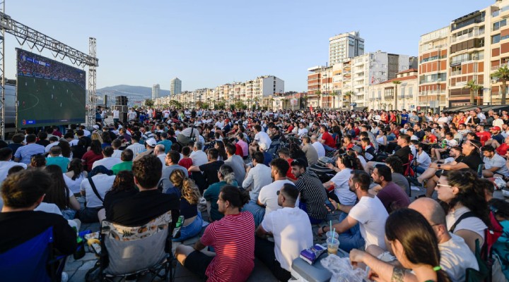 ?zmirlilerin ailecek, sevdikleriyle birlikte alanlara ko?arak Portekiz maç?n? izledi?i anlarda renkli görüntüler ya?and?. Alsancak Gündo?du Meydan?’nda eski Gençlik ve Spor Bakan?, AK Parti ?zmir Milletvekili Mehmet Kasapo?lu da yer ald?. Ayr?ca ?zmirliler Büyük?ehir Belediyesi’nin sundu?u hizmetten de duyduklar? memnuniyeti aktard?.