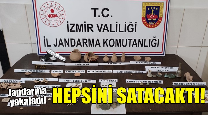 Üst aramas?nda üzerinde bir adet tabanca ele geçirilen ?üpheli ekiplerce gözalt?na al?n?rken, ele geçirilen tarihi eserler ?zmir Müze Müdürlü?ü'ne teslim edilecek.
