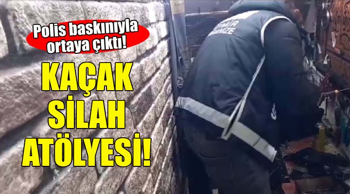 ?zmir'in Karaba?lar ilçesinde, bir eve yap?lan bask?nda çok say?da tabanca ve silah üretiminde kullan?lan malzeme ele geçirilirken, ev sahibi M.Y gözalt?na al?nd?.