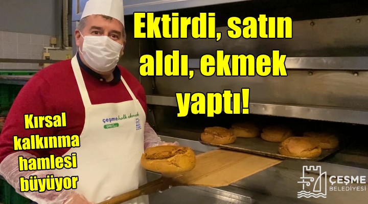 Daha sonra ö?ütülerek un olan bu?daylar, Çe?me Belediyesi'nin halk ekmek fabrikas?nda enfes kokulu ve sa?l?kl? ekmeklere dönü?meye ba?lad?. Ba?kan Ekrem Oran da önlü?ünü giyip, maskesini tak?p karak?lç?k ekme?i pi?irmek için f?r?n?n ba??na geçti.