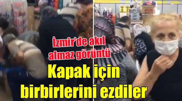 Olay, sabah saatlerinde, Bornova'daki zincir marketin ?ubesinde meydana geldi. ?ndirime giren kavanoz kapaklar?ndan almak amac?yla erken saatlerde