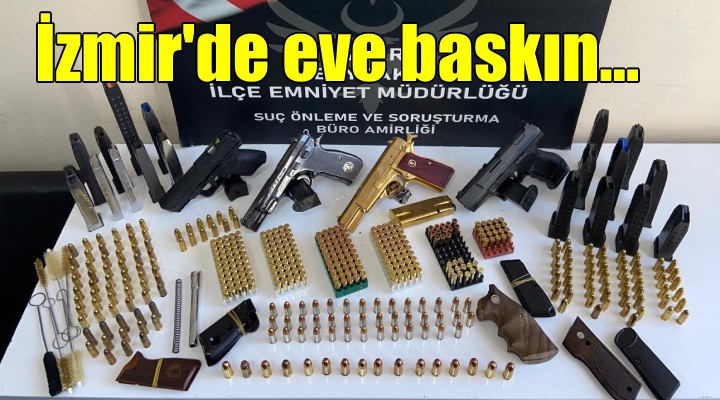 Bayrakl? ?lçe Emniyet Müdürlü?ü Suç Önleme ve Soru?turma Büro Amirli?i ekipleri, ilçede bir ki?inin adresinde çok say?da silah oldu?u bilgisine ula?t?. Bunun üzerine harekete geçen ekipler, ?üpheli S.K.'n?n (45) adresine savc?l?k izni ile operasyon gerçekle?tirdi. ?üphelinin adresinde yap?lan aramalarda 4 tabanca 22 sarjör, 433 fi?ek ve tabancalara ait parçalar ele geçirildi. S.K. gözalt?na al?narak sorgulanmak üzere emniyete götürülürken, silahlara el konuldu. S.K.'n?n emniyetteki i?lemlerinin ard?ndan adliyeye sevk edilece?i belirtildi.