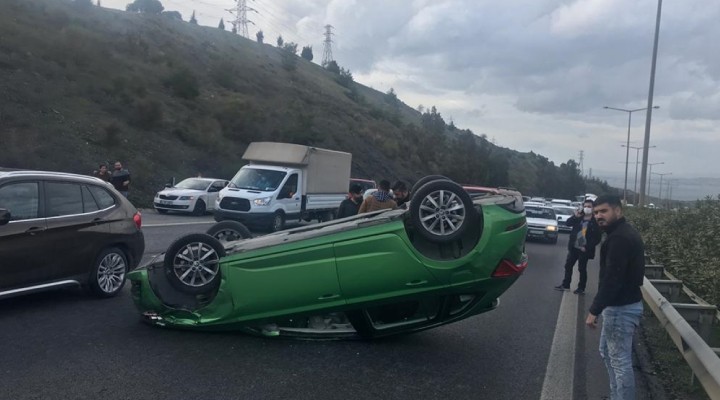 Al?nan bilgiye göre, çevre yolunda Balçova'dan Gaziemir istikametine giden sürücüsü henüz belirlenemeyen 06 CBY 283 plakal? otomobil, Limontepe kav?a??na gelmeden sürücüsünün direksiyon hakimiyetini kaybetmesi sonucu ters döndü.