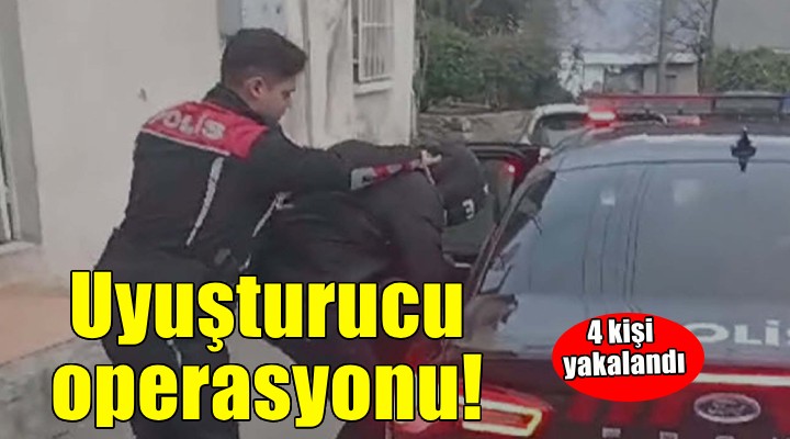 ?l Emniyet Müdürlü?ü Asayi? ?ube Müdürlü?ü Güven Timleri Büro Amirli?i ve Motosikletli Polis Timleri Büro Amirli?i ekipleri, 12-15 May?s tarihleri aras?nda Kar??yaka, Konak ve Karaba?lar ilçelerinde ortak operasyonlar düzenledi. Operasyonlarda 173 gram bonzai, 6 bin 617 sentetik uyu?turucu hap, 3 kilo 150 gram esrar ve suçtan elde edildi?i de?erlendirilen 49 bin lira ele geçirildi. ?üpheliler G.K., F.T., N.Ö. ve G.D. gözalt?na al?nd?. Emniyetteki i?lemlerinin ard?ndan adliyeye sevk edilen ?üpheliler, ç?kar?ld?klar? mahkemede tutukland?. ?üphelilerden H.E.'nin de yakalanmas? için çal??malar?n sürdü?ü bildirildi.