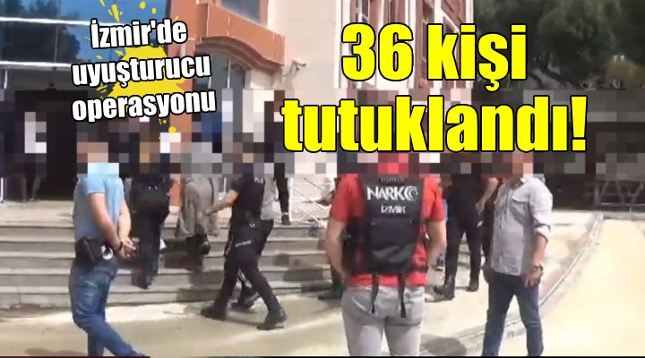 ?zmir ?l Emniyet Müdürlü?ü ekipleri, kent merkezi ile Torbal?, Bay?nd?r, Tire, Kiraz ve Menderes ilçesinde uyu?turucu madde ticaretine yönelik çal??ma ba?latt?. Ekipler, 5 ay boyunca belirlenen adresleri ve ?üphelileri teknik ve fiziki takibe ald?. ?zmir Cumhuriyet Ba?savc?l???ndan al?nan talimat sonras?nda operasyon için harekete geçildi. Kent merkezi ve 5 ilçede 150 ekip, 5 özel harekat ekibi olmak üzere 500 personel, 1 helikopter ve 8 narkotik köpe?i ile e? zamanl? bask?n yap?ld?.