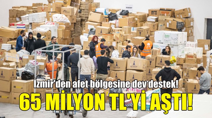 Depremzedelerin ihtiyac? olan insani yard?m malzemelerinin yard?mseverler taraf?ndan sat?n al?nmas?n? sa?layan “umuthareketi.izmir.bel.tr” 47 milyon 893 bin 630 lira yard?m yap?ld?. Depremde evini kaybetmi? yurtta?lar ile kira deste?i vermek veya bo? durumdaki evini kullan?ma açmak isteyen ki?ileri bulu?turan “birkirabiryuva.org” ile ise 17 milyon 390 bin liral?k katk? sa?land?. Kampanyayla bin 126 ki?i kira deste?i verece?ini, 580 ki?i evini payla?aca??n? beyan etti. Yard?mlar?n toplam miktar? 65 milyon 283 bin 630 liraya ula?t?. Gaziemir Fuar ?zmir, Kültürpark Celal Atik Spor Salonu ile Çankaya'daki AP?KAM'?n bahçesinde yurtta?lardan gelen insani yard?m malzemelerinin paketlenme ve yükleme çal??malar? sürüyor.