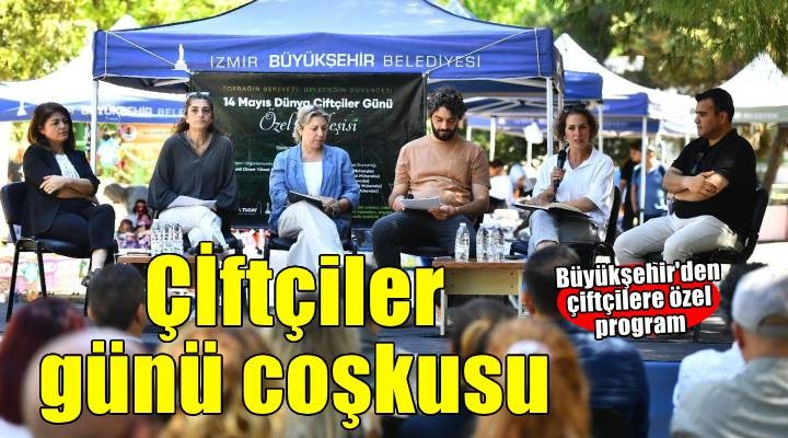?zmir’de 14 May?s Dünya Çiftçiler Günü, hafta boyunca ?zmir Büyük?ehir Belediyesi’nin düzenledi?i etkinliklerle kutland?. ?zmir Büyük?ehir Belediyesi’nin her çar?amba Kültürpark’ta kurdu?u üretici pazar?nda düzenlenen kutlama program?nda ise çiftçiler keyifli bir gün geçirdi. ?zmir Büyük?ehir Belediyesi Bandosu’nun mar?lar?yla renklenen üretici pazar?nda, organik tar?m ve sürdürülebilir tar?m uygulamalar? ile ilgili söyle?i düzenlendi. Büyük?ehir Belediyesi Genel Sekreter Yard?mc?s? ?smail Mutaf ve Tar?msal Hizmetler Dairesi Ba?kan? Bülent Üngür üreticilerin çiftçiler gününü kutlad?.