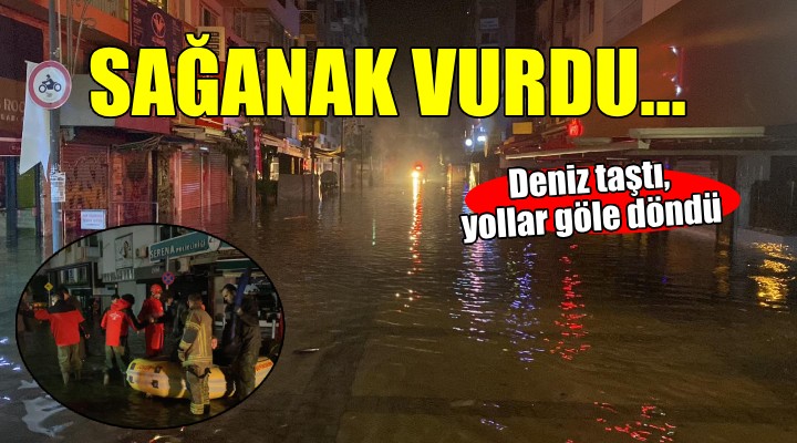 Meteoroloji Genel Müdürlü?ü taraf?ndan yap?lan kuvvetli ya??? ve f?rt?na uyar?s?n?n ard?ndan ak?am saatlerinden itibaren etkisini artt?ran f?rt?na sebebiyle Mavi?ehir ve Yal? mahallelerinde deniz ta?t?. Deniz sular? kald?r?mlarla birle?ti, sitelerin bahçeleri su alt?nda kald?. ?zmir Büyük?ehir Belediyesi itfaiye ekipleri, bölgede çal??ma ba?lat?rken, vatanda?lara da araçlar?n? bulundu?u yerden kald?rmalar? için anons yap?lmaya ve sirenler çal?nmaya devam ediliyor.