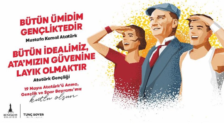19 May?s Atatürk’ü Anma Gençlik ve Spor Bayram?, ?zmir Büyük?ehir Belediyesi taraf?ndan kentin dört bir yan?nda düzenlenen etkinliklerle kutlanacak. 19 May?s günü sabah 10.00’da Cumhuriyet Meydan?’ndaki resmi törenle ba?layacak etkinlikler gün boyu devam edecek. Saat 20.00’de 350 metrelik Atatürk posteri fener alay? ile Cumhuriyet Meydan?’ndan Gündo?du Meydan?’na ta??nacak. ?zmir Büyük?ehir Belediyesi’nin ?nciralt? Kent Orman?’nda düzenledi?i gençlik kamp?nda gün boyu etkinlikler devam ederken, Gündo?du Meydan?’nda saat 20.30’da rock müzi?inin sevilen ismi Teoman gençlerle bulu?acak. Ard?ndan DJ Mahmut Orhan sahne alacak.
