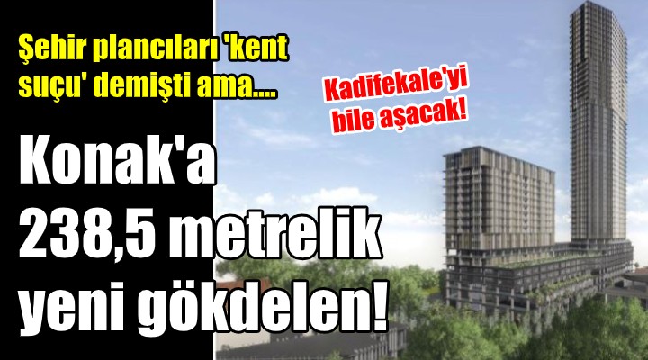 ?lki 238,5 metre, ikincisi 13,27 metre, üçüncüsü ise 17,30 metre yüksekli?indeki 3 bloktan olu?acak proje, trafik ve toplu ula??m yo?unlu?unun yüksek oldu?u, liman?n yan? ba??ndaki Halkap?nar’da yer alacak. ?zmir’in en yüksek noktas? olan 186 metrelik Kadifekale’den neredeyse 1,5 kat daha yüksek olacak projede, 633 konut, 181 odal? otel, 358 ofis ve 44 i?yeri yer alacak. Proje yakla??k 544 milyon 144 bin TL’ye mal olacak.