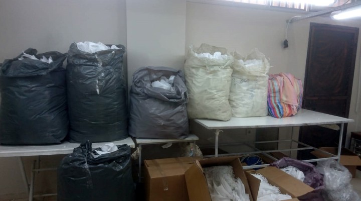 ?zmir Büyük?ehir Belediyesi’nin yeni koronavirüs salg?n?yla mücadelesi sürüyor. Büyük?ehir’e ba?l? Zab?ta Daire Ba?kanl??? ekipleri, Bayrakl? Belediyesi’ne ba?l? zab?ta ekipleri ve Bayrakl? ?lçe Emniyet Müdürlü?ü polis memurlar?yla dün birlikte kaçak bir maske imalathanesine bask?n yapt?. Ekipler ?l Sa?l?k Müdürlü?ü’ne teslim edilmek üzere içeride bulunan 9 çuval ve 3 koli maskeye el koydu. ?malathaneyi ise mühürledi