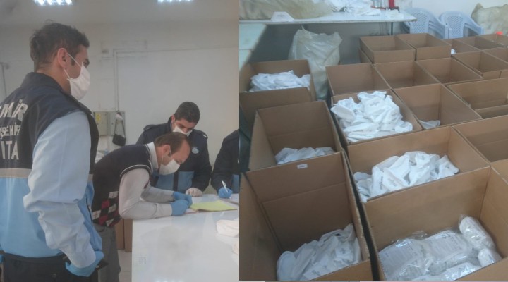 SONKALE?ZM?R-?zmir Büyük?ehir Belediyesi Zab?ta ekipleri, kaçak maske üreticilerine göz açt?rm?yor. ?imdiye kadar uygunsuz ko?ullarda üretilen yüzbinlerce maskeye el koyan Büyük?ehir zab?ta ekipleri son olarak Kar??yaka Yamanlar'da 60 bin maskeye yasal i?lem uygulad?.