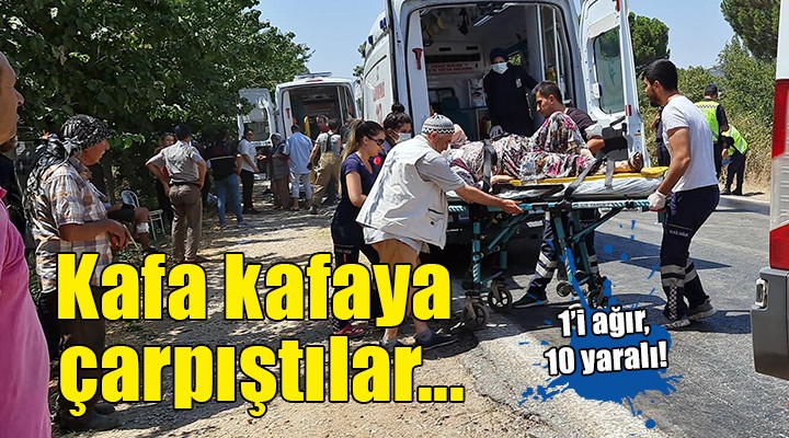 Kaza, ö?le saatlerinde Tire- Belevi yolunda meydana geldi. Ali Yi?it yönetimindeki 35 TIC 87 plakal? hafif ticari araç ile Feride Özalp'?n kulland??? 35 ADH 861 plakal? hafif ticari araç kafa kafaya çarp??t?. Kazada 10 ki?i yaralan?rken, çevredekilerin ihbar? üzenine bölgeye sa?l?k, polis, jandarma ve itfaiye ekipleri sevk edildi. AKS arama- kurtarma ekipleri, araçlarda s?k??an yaral?lar? kurtard?.