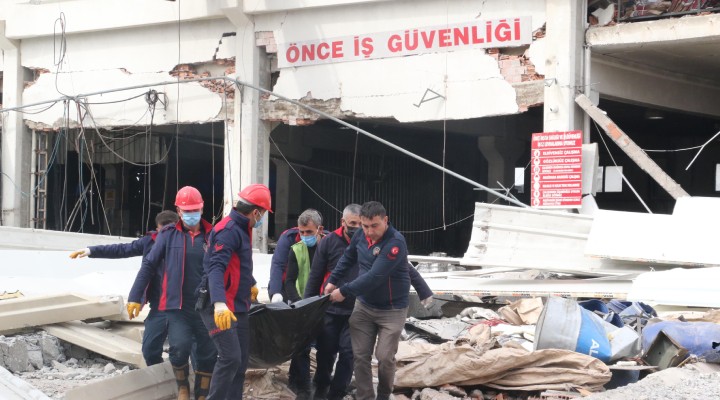 Dulkadiro?lu ilçesi Karaziyaret Mahallesi'nde depremlerde a??r hasar alan bir metal fabrikas?nda, iddiaya göre, i? yeri sahibi, baz? i?çileri paket ürünleri içeriden ç?kartmak için görevlendirdi. Tavan ve kolonlar?n çöktü?ü fabrikada i?çiler, enkaz alt?nda kald?. Bölgeye giden itfaiye ekipleri, Ali Çam, ?dris Nacar, Mehmet Canl? ve ?brahim Burak Öztürk'ü yaral? kurtard?. Kolonun alt?nda kalan ?smail Alak?z ise hayat?n? kaybetti. Yaralanan i?çiler, ambulanslarla hastaneye kald?r?ld?.