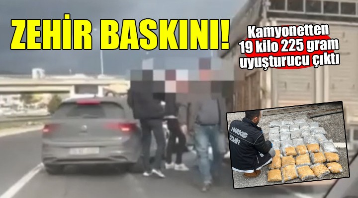 ?l Emniyet Müdürlü?ü Narkotik Suçlarla Mücadele ?ube Müdürlü?ü ve ?stihbarat ?ube Müdürlü?ü ekipleri, takibe ald?klar? kamyoneti Bornova ilçesinde durdurdu.