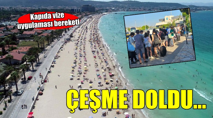 ?zmir'in gözde tatil merkezlerinden Çe?me ilçesi, 9 günlük bayram tatili nedeniyle Türkiye'nin farkl? bölgelerinden gelen tatilcilerin ak?n?na u?rad?. Kap?da vize uygulamas? kapsam?nda tatilinin bir k?sm?n? Yunan adalar?nda geçirmek için gelen ve tura ç?kmak isteyen tatilciler de uzun kuyruklar olu?turdu. Ramazan Bayram? tatili için Çe?me'de beklentinin üzerinde rezervasyonlar?n oldu?unu dile getiren ÇE?TOB Ba?kan? Yakup Demir, "Bu bayramda vatanda?lar tatili bölerek kullanmay? tercih ediyor. Kap? vizesi uygulamas?n?n ba?lamas?yla 2-3 gün Çe?me, 1-2 gün Sak?z Adas? tatili planlar?n?n yan? s?ra, ayn? noktadan farkl? destinasyonlar? bir arada kullan?yorlar. Bayramdan mutluyuz. Bayram güzel bir tarihe geldi, sezonun ba?lang?c? ve bahar?n gelmesiyle denize girmeyi tercih edenler oluyor. Ayr?ca havuzu kullananlar çok tatilci var. Bayram?n 9 gün olmas?yla trafik sorunu da ya?anmad?" dedi.