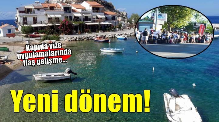 Türk vatanda?lar? için Yunan adalar?na kap?da vize uygulamas? Nisan 2026 y?l?na kadar uzat?ld?. Rodos, ?stanköy, Sisam, Midilli, Sak?z, Leros, Sömbeki, Limni, Kalimnos ve Kastelorizo olmak üzere 10 adan?n bulundu?u listeye Patmos ve Semadirek adalar?n?n da eklenerek, kap?da vizeyle ziyaret edilebilecek ada say?s? 12'ye ç?kt?. Uygulaman?n ba?lad??? Mart 2024'te itibaren 105 bin Türk vatanda??n?n Yunan adalar?n? ziyaret etti?ini dile getiren TÜRSAB ?zmir BTK Ba?kan? K?vanç Meriç, "Geçti?imiz y?l 10 aday? en çok Türk vatanda?? ziyaret etti. Bu sene de bu say?n?n artaca??n? öngörüyoruz. Çünkü kap?da vizeyle girilen ada say?s? artt? ve hizmet bu sene daha profesyonel olacak" dedi.