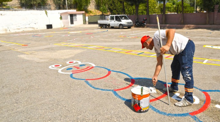 Karaba?lar Belediyesi okullara destek çal??malar?n? sürdürüyor. Belediye ekipleri koordinasyonun da yap?lan çal??malarda ihtiyaç duyulan okullara boya deste?i verilirken, ayr?ca ekipler ö?rencilerin oynad??? oyun alanlar?n?n yer çizgilerinin boyamas?n? da yapt?. Okul bahçelerinde a?açlar?n budamas?, kosa ve temizlik çal??malar?n? da yapan ekipler, montaj ve tamirat gerektiren konular? da k?sa sürede tamamlayarak haz?r hale getirdi.