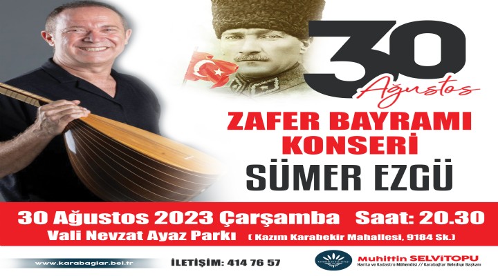 Bu kapsamda Karaba?lar Belediyesi taraf?ndan düzenlenen Sümer Ezgü Konseri, Kaz?m Karabekir Mahallesi'ndeki Vali Nevzat Ayaz Park?'nda gerçekle?tirilecek. Türk Halk Müzi?i'nin sevilen sanatç?s?, 30 A?ustos'ta saat 20.30'da ba?layacak konserde ?zmirlilerle bulu?acak.