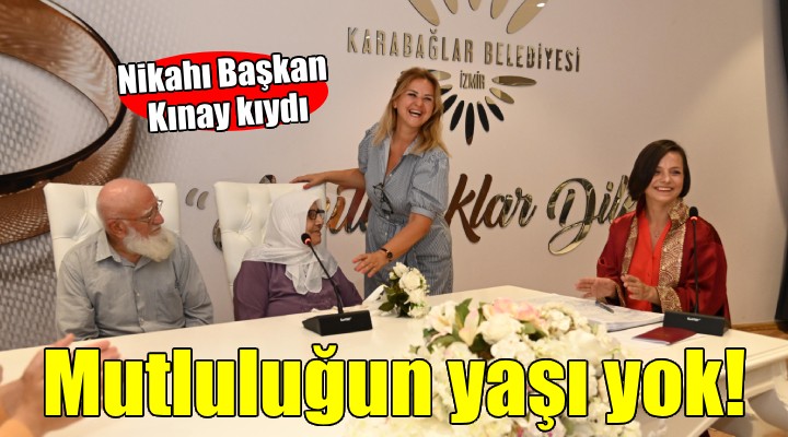 Karaba?lar Belediye Ba?kan? Helil K?nay da Ömer ve Emine Akta? çiftini bu mutlu günlerinde yaln?z b?rakmayarak onlar?n mutlulu?una ortak oldu. ?ahitliklerini Beste Akta? ve Bü?ra Koputan’?n yapt??? nikah? k?yd?ktan sonra Akta? çiftini tebrik eden Ba?kan K?nay, “Bu özel nikah? k?ymaktan büyük mutluluk duydum. Bir ömrü mutluluk içerisinde geçiren Akta? ailesine sa?l?k dolu nice uzun y?llar diliyorum” dedi.
