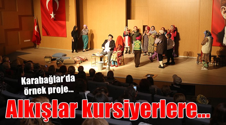 Kad?nlar?n “sahne tozunu ilk kez yuttuklar?” proje, yakla??k 8 ay önce ba?lad?. Karaba?lar Belediyesi'nin 16 semt merkezinde e?itim gören kad?nlar, Karaba?lar Kent Konseyi ve Karaba?lar Halk E?itim Merkezi ??birli?iyle düzenlenen “uygulamal? tiyatro kursuna” kat?ld?. Ayr?ca oyunun haz?rl???nda kursiyer kad?nlar?n çocuklar? ve torunlar?ndan 5'i de yer ald?.