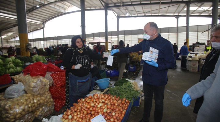 Karaba?lar Belediyesi Zab?ta ekipleri, tüm pazaryerlerine koronavirüs riskine kar?? uyar? afi? ve pankartlar? ast?; esnafa da bunlardan da??tt?. Yapt?r?mlar Karaba?lar'daki 12 pazaryerinde de uygulan?yor ve kuralla uyulup uyulmad??? sürekli denetleniyor. Genelgeler kapsam?nda tüm pazaryerlerinde sat??lar saat 19.00'da sonland?r?l?yor. Esnaf, tezgah numaralar?n?n tek ya da çift olmas?na göre, haftal?k periyotlar halinde sat?? yapabiliyor.