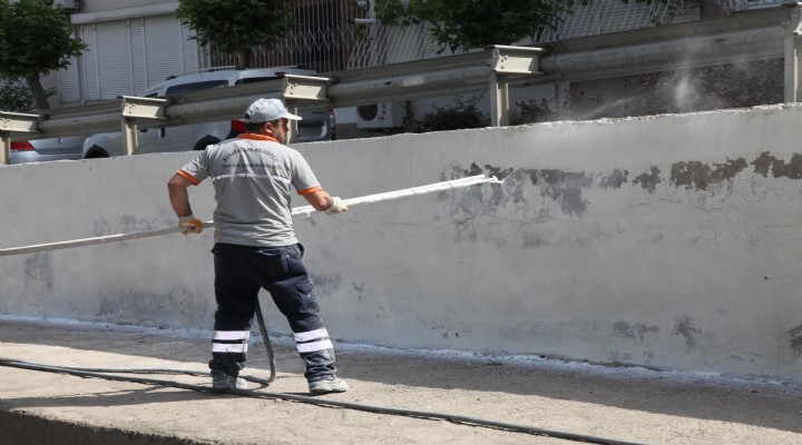 Karaba?lar Belediyesi ilçede bulunan hastane, okul, mezarl?k duvarlar?, istinat duvarlar? ile görüntü kirlili?i yaratan yap?lar?n duvarlar?n? kireçle boyayarak daha temiz bir görüntüye kavu?turuyor.