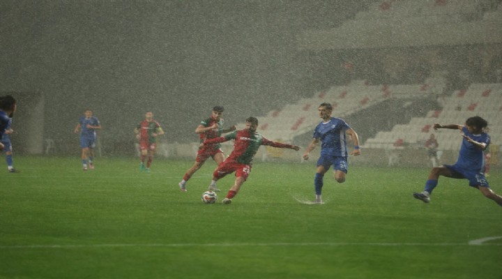 ?zmir’de ya?an çok ?iddetli sa?anak ya?mur Alsancak Mustafa Denizli Stad?’nda Kar??yaka ve Alanyal? oyunculara zor anlar ya?att?. Sahan?n belli bölgelerinde birikin su birikintileri nedeniyle futbolcular pas al??-veri?inde ve ayakta kalmakta zorland?lar. ?lk yar?n?n 23’üncü dakikas?nda maç?n hakemi Ertu?rul Kösterelio?lu a??r? ya??? ve a??rla?an zeminde oyunu durdu. Maç?n ertelenmesi için yap?lan görü?meler sonras? oyuna devam etme karar? ç?kt?. Sahada yer alan oyuncular, tribündeki taraftarlar ile kar??la?mada görev yapan güvenlik güçleri a??r? ya?an ya?mur alt?nda zor anlar ya?ad?. Kar??yakal? baz? taraftarlar saha kenar?nda s?r?ls?klam olan top toplay?c? çocuklara ceketlerini verdi. Kar??yakal?lar maç?n ard?ndan galibiyeti s?r?ls?klam birlikte kutlad?.