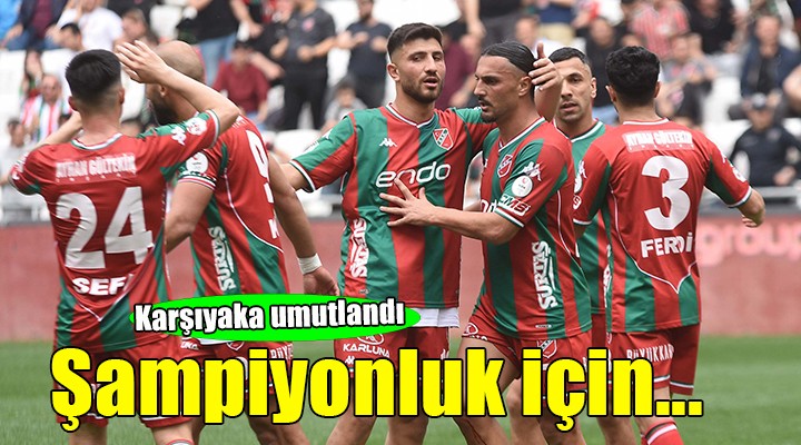 Bursaspor'un 52 puanda oldu?u ligde 47 puana ula?arak, 45 puanl? Belediye Kütahyaspor ve 46 puandaki Düzcespor'u sollay?p ikincilik koltu?una yeniden kurulan ?zmir temsilcisi, sezon boyunca ya?ad??? s?k?nt?lara ra?men taraftar? ?ampiyonluk havas?na soktu. Bu hafta Play-Off hatt?ndaki Mu?spor'a konuk olacak ye?il-k?rm?z?l? ekip, sezonun son 6 maç?n?n 4'üne iç sahada ç?kacak. Kar??yaka ligin finali niteli?indeki son iki maçta ise yar??ta çeki?ti?i Kütahyaspor'a konuk olduktan sonra son maçta Bursaspor'u a??rlayacak.