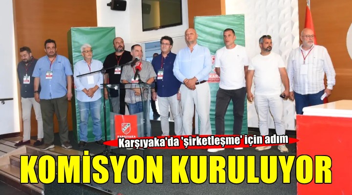Ye?il-k?rm?z?l?lar ?irketle?me için komisyon kurulmas? karar? ald?. Olu?turulacak komisyonun, tarihi kulübün bünyesine uygun ?irketle?me yap?s? için çal??aca?? belirtildi. ?zmir'de Altay ile birlikte ?irketle?meyen iki kulüpten biri olan Kar??yaka'da öncelikle yakla??k 5 bin üye içerisinden pasif üyelerin üyelikten ç?kar?lmas? gündeme gelecek. ?irketle?me onay?n?n al?nmas? için genel kurula 3'te 2 kat?l?m sa?lanmas? ve ço?unlu?un kabul oyu vermesi gerekiyor. Üye sorunun a??lmas? için tüzük genel kurulu da yap?lmas? bekleniyor.
