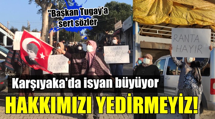 SONKALE?ZM?R-Kar??yaka'da Cumhuriyet Mahallesi'nin tamam?, ?nönü ve Örnekköy mahallelerinin de bir k?sm?n? kapsayan, Kar??yaka Belediye Meclisi'nde al?nan karar sonras? ask?ya ç?kar?lan kentsel dönü?üm imar planlar?na tepki büyüyor. Yeni planlarla arazilerinin yüzde 45'ine bedelsiz el konulaca??n? öne süren yurtta?lar Cumhuriyet Mahallesi kapal? pazaryeri önünde eylem düzenledi. "Mülkiyet haklar?m?z korunsun", "Ranta hay?r", "Ferman ba?kan?nsa mahalle bizimdir" yaz?l? dövizler ta??yan yakla??k 30 ki?i Belediye Ba?kan? Cemil Tugay'a seslendi.