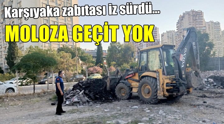 Kamyon trafikten men edilirken zab?ta ekipleri güvenlik kameralar?n? inceleyerek kamyonun güzergah?n? ve ç?k?? noktas?n? tespit etti. Molozun Bostanl? ?skele’de tadilat yapt?ran bir i?letmeye ait oldu?u belirlendi. ??letme sahibinin tadilat? bir in?aat firmas?na yapt?rd???, in?aat firmas?n?n da moloz dökümü için kamyoncu Metin Koca ile anla?t??? ortaya ç?kt?. ??letme sahibi molozun belediyeye ait alana döküldü?ünden bilgisi olmad???n? belirtti. Zab?ta ekipleri i?letme sahibinden molozu derhal kald?rmas?n? istedi. Bunun üzerine i?letme sahibi 24 saat geçmeden molozlar? kald?r?p ?zmir Büyük?ehir Belediyesi denetimindeki yasal moloz döküm alan?na ta??d?. Kar??yaka Belediyesi yetkilileri, duyarl? vatanda?lara te?ekkür ederken, tüm Kar??yakal?lardan moloz dökenleri gördüklerinde belediyenin 399 40 00 numaral? telefonuna ihbarda bulunmalar?n? istedi.