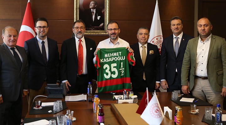 Görü?meye Kar??yaka Ba?kan? Turgay Büyükkarc?, Divan Kurulu Ba?kan? ve Kar??yaka Belediye Meclis Üyesi Fatih Diniz, Genel Sekreter Mehmet Yaya ile yönetici Kaz?m Türk kat?ld?. Yakla??k 1 saat süren görü?mede daha önce 2014 ve 2017 y?llar?nda 2 kez yap?lan ihalesi aç?lan davalarla iptal edilip yeniden ihale a?amas? beklenen Kar??yaka Stad? ile ilgili çal??malar?n h?zland?r?laca??n? müjdeleyen Bakan Kasapo?lu, Kar??yaka'n?n yarar?na olacak her projede de üzerlerine dü?en ne varsa yerine getirmeye haz?r olduklar?n? aktard?.