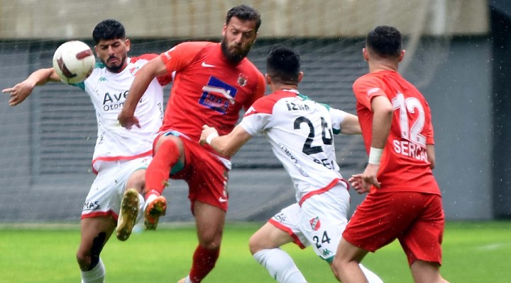 55'inci dakikada sol kanattan geli?en konuk ekip ata??nda Cenk Celil ortas?n? yapt?, Enes Ocak'?n volesinde kaleci Haydar gole izin vermedi.