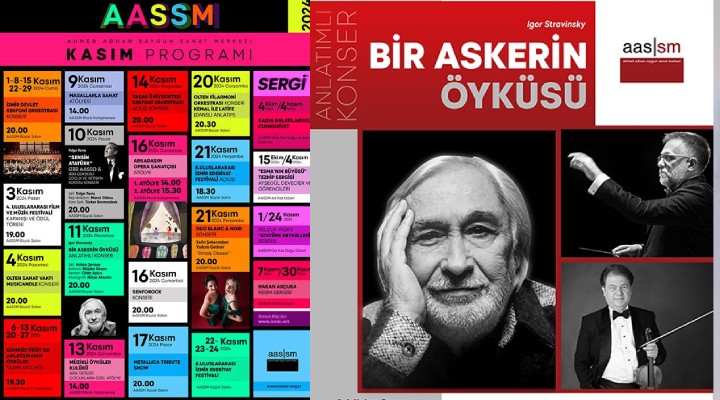 ?zmir Büyük?ehir Belediyesi Ahmed Adnan Saygun Sanat Merkezi’nin (AASSM) kas?m ay? etkinlikleri, 1 Kas?m’da saat 20.00’de ?zmir Devlet Senfoni Orkestras?’n?n konseri ile ba?l?yor. Konser, 8-15-22-29 Kas?m tarihlerinde de gerçekle?tirilecek.