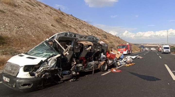 Gaziantep'in Nizip ile ?anl?urfa'n?n Birecik ilçeleri aras?ndaki otoyolda, ?anl?urfa'dan Gaziantep yönüne seyreden 21 ADE 794 plakal? yolcu minibüsü ile 33 ACR 915 plakal? Karayollar? Bölge Müdürlü?ü'ne ait kamyon çarp??t?. Minibüs, bariyerlere çarparak durabildi.