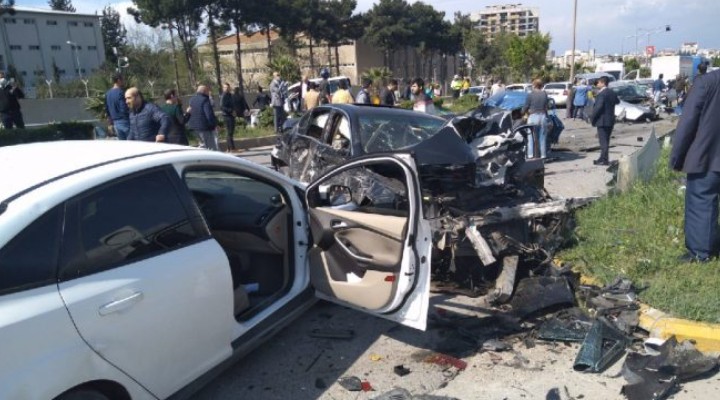 ?lçedeki Deniz Er E?itim Alay? kar??s?nda polis ekiplerinin uygulama noktas?ndaki araçlara freni bo?alan TIR çarpt?. Meydana gelen kazada ondan fazla araç hasar görürken 5 ki?i öldü, 15 ki?i de yaraland?.