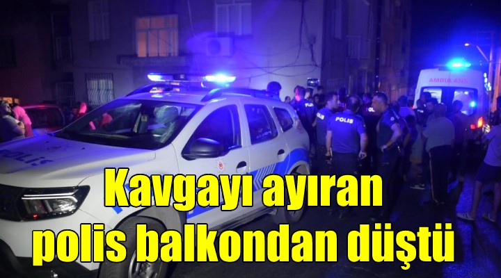 Olay, saat 00.00 s?ralar?nda Bayrakl? R. ?evket ?nce Mahallesi 2014/19 sokakta meydana geldi. ?ki karde? aras?nda kavga oldu?u ihbar?n? alan Bayrakl? ?lçe Emniyet Müdürlü?ü'ne ba?l? polis ekipleri, bölgeye hareket edip, apartmana girerek kavgaya müdahale etmek istedi. Polis memuru Murat Güne?, iki karde? aras?ndaki arbedeyi ay?rmaya çal???rken, 2 metre yükseklikteki balkondan beton zemine dü?tü. Mesai arkada?lar?n?n durumu bildirmesi üzerine olay yerine sa?l?k ve takviye polis ekipleri sevk edildi. Gelen sa?l?k ekiplerince olay yerinde ilk müdahalesi yap?lan Murat Güne?, Ege Üniversitesi Hastanesi'ne kald?r?ld?. Tedaviye al?nan Murat Güne?'in hayati tehlikesinin bulunmad??? ö?renilirken, olayla ilgili 2 ki?i gözalt?na al?nd?.