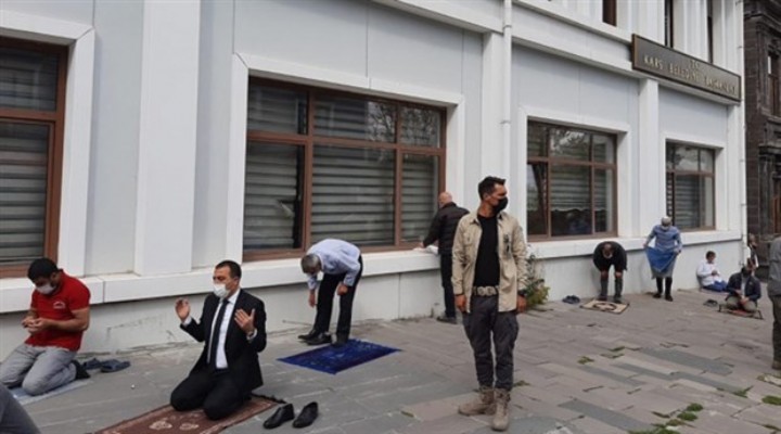 Kars Belediyesi’ne kayyum olarak atanan Vali Türker Öksüz, Yeni Ya?am'?n haberine göre ilk i? olarak belediye önünde Cuma namaz? k?ld?.
